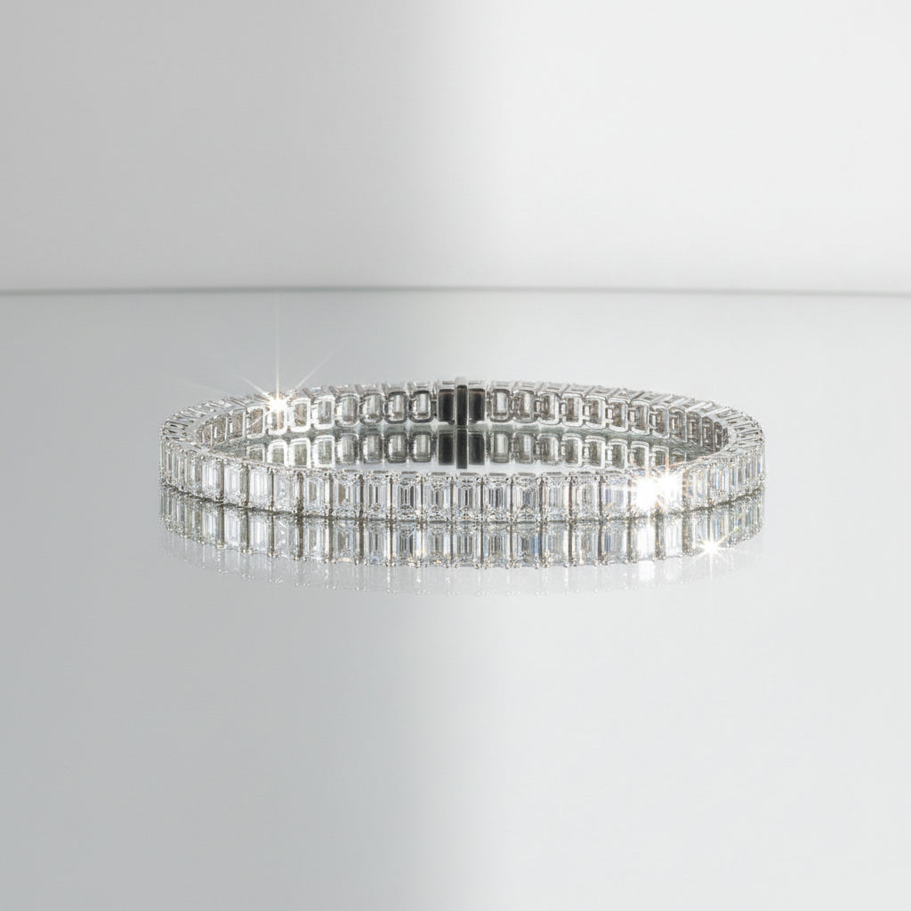 The classic tennis look, with an edge. Featuring a bold, sharp design and hand-set VVS+ Moissanite stones, it’s built to stand out and spark conversation wherever you go.
